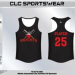 Black razorback tank with Bandits front graphic and customizable PLAYER/NUMBER on the back built for training and hot-weather performance.
