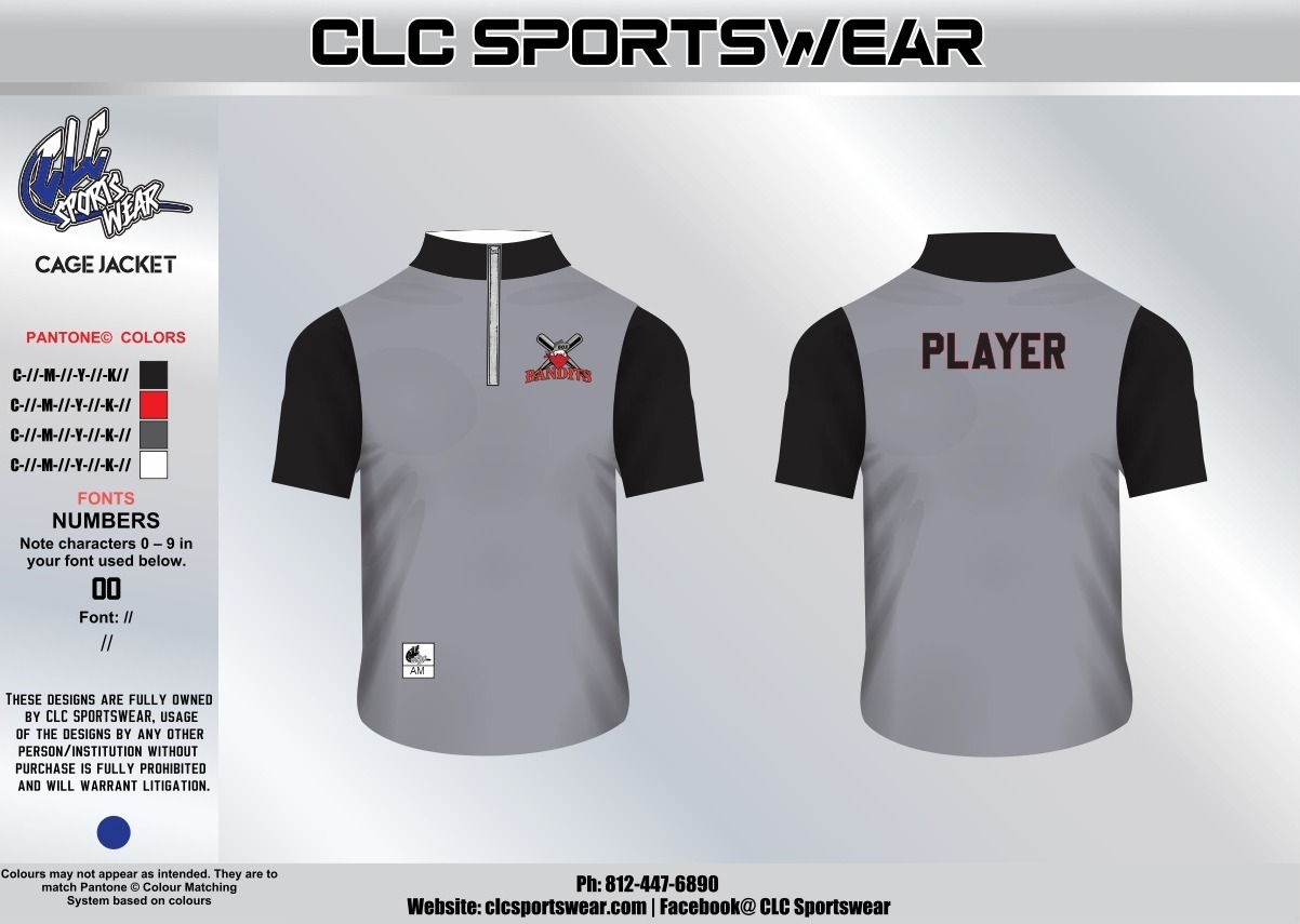 Quarter-zip cage jacket top in grey/black with Bandits chest logo and PLAYER personalization on the back.