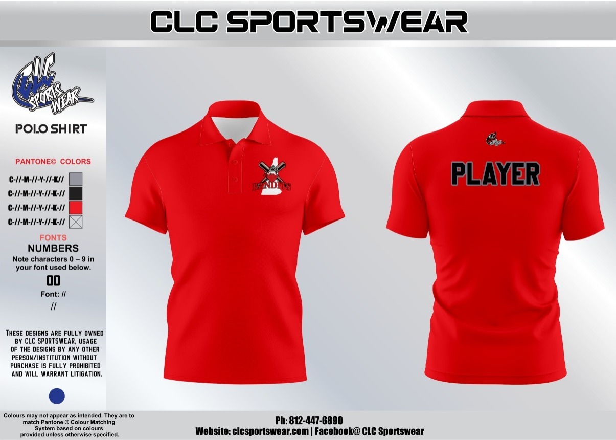 Classic red polo shirt with Bandits chest logo and PLAYER personalization on the back sharp, professional, and game-ready.