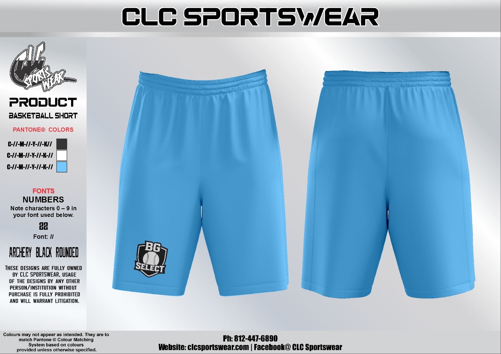BG Select Baseball Athletic Shorts – Basketball Cut (Carolina Blue)