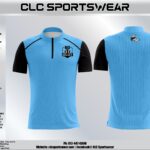 Short-sleeve 1/4-zip cage jacket in carolina blue with black sleeves—lightweight coverage for warmups and cages.