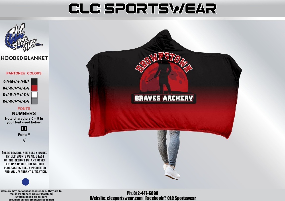 Brownstown Braves Archery Hooded Blanket – Black/Red