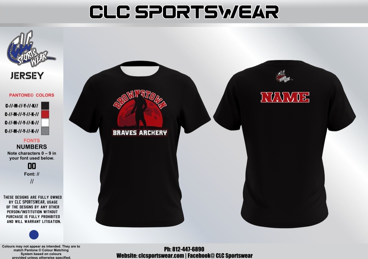 Sleek black athletic jersey with the bold Brownstown Braves Archery design for peak performance.