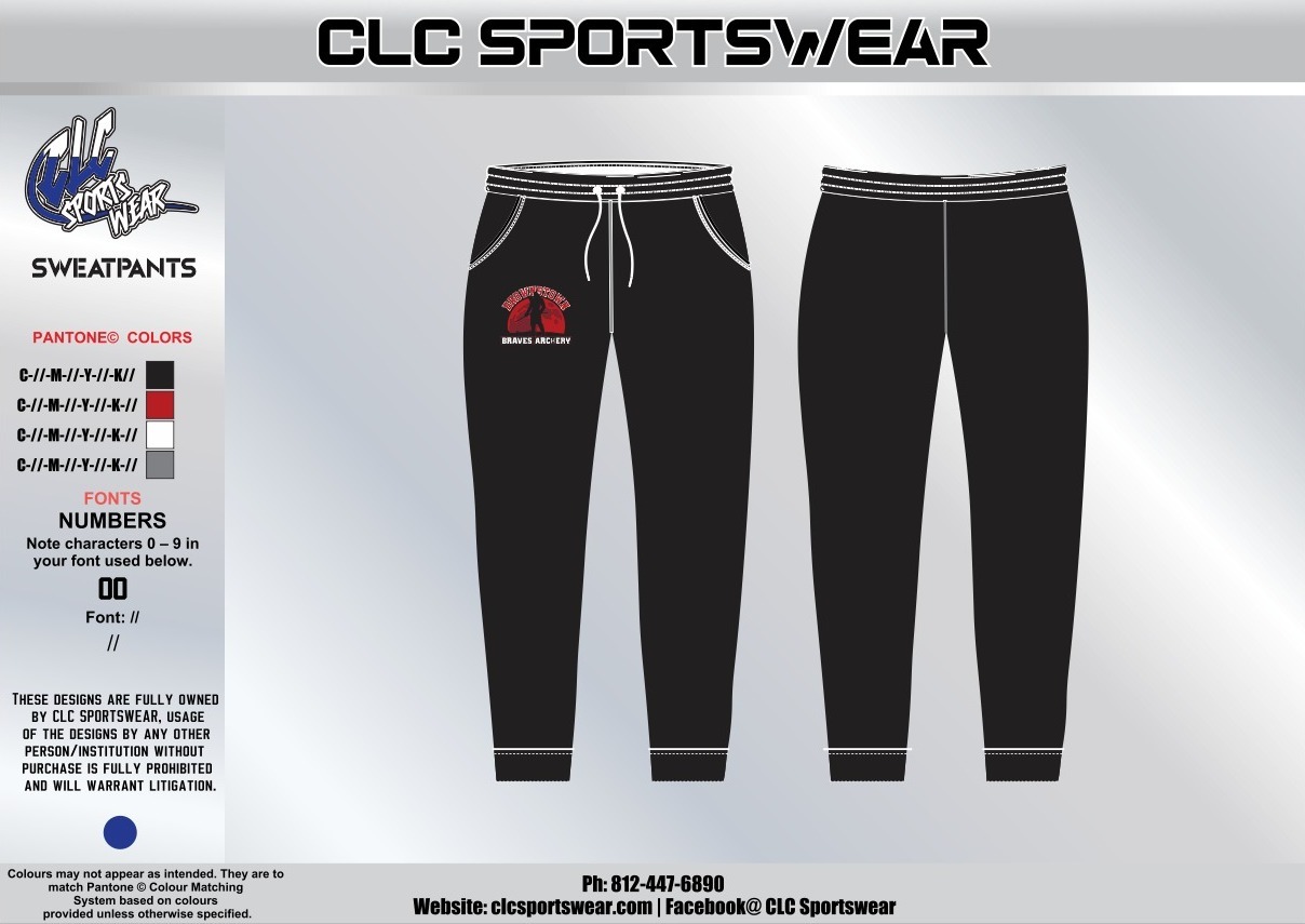 Comfortable black sweatpants with the Brownstown Braves Archery logo, perfect for training and casual wear.