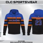 CLC Bears 2025 Custom Hoodie in blue, orange, and black with name and number.