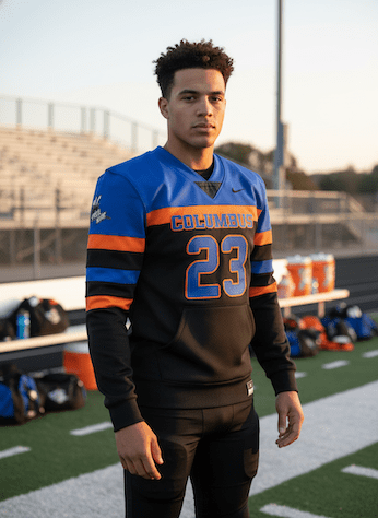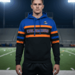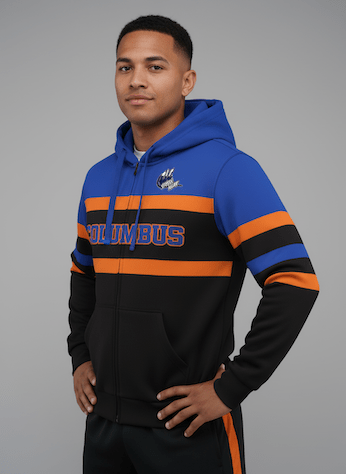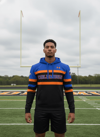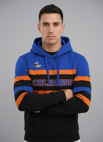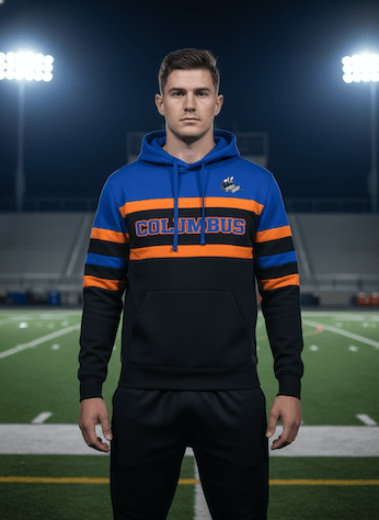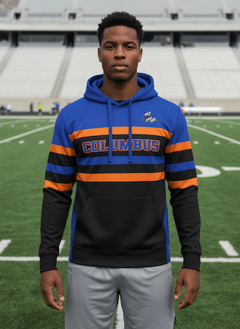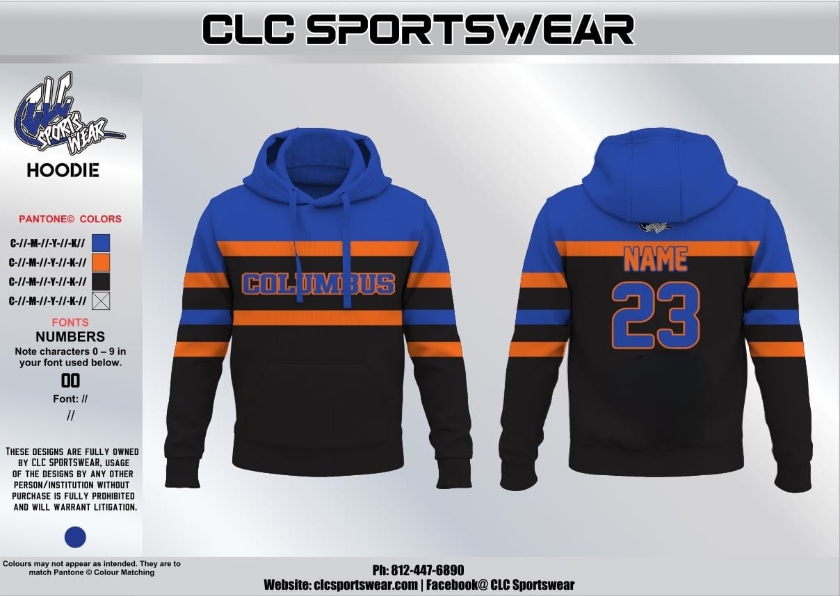 Level up your game-day outfit with the CLC Bears 2025 Hoodie, a bold combination of blue, orange, and black. Designed for warmth, comfort, and team spirit, this hoodie features vibrant striping, the ‘COLUMBUS’ name across the chest, and customizable back details including your name and number.