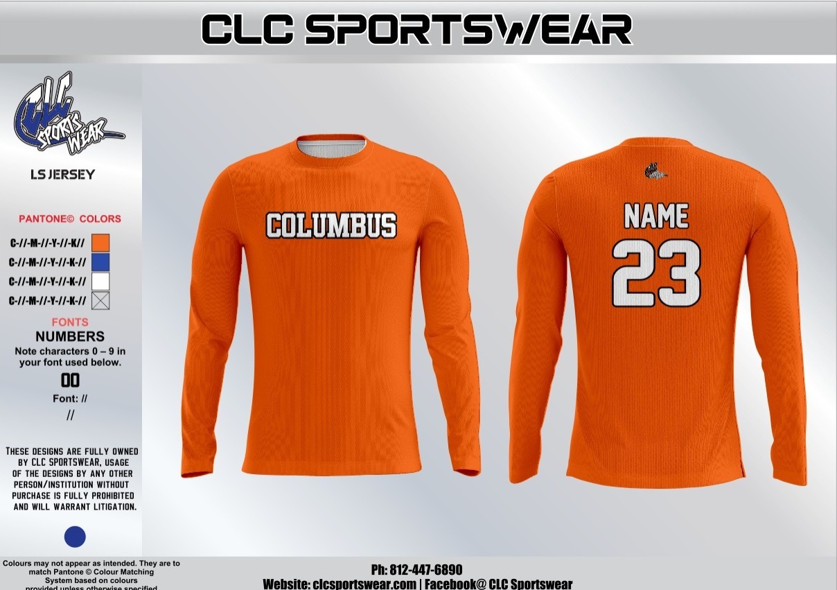 Stay warm and rep your team with the official CLC Bears 2025 Orange Long Sleeve Jersey. Built with thermal-regulating fabric, this jersey is ideal for cooler days while still offering flexibility and breathability. The signature ‘COLUMBUS’ branding on the front and optional name and number on the back make it uniquely yours.