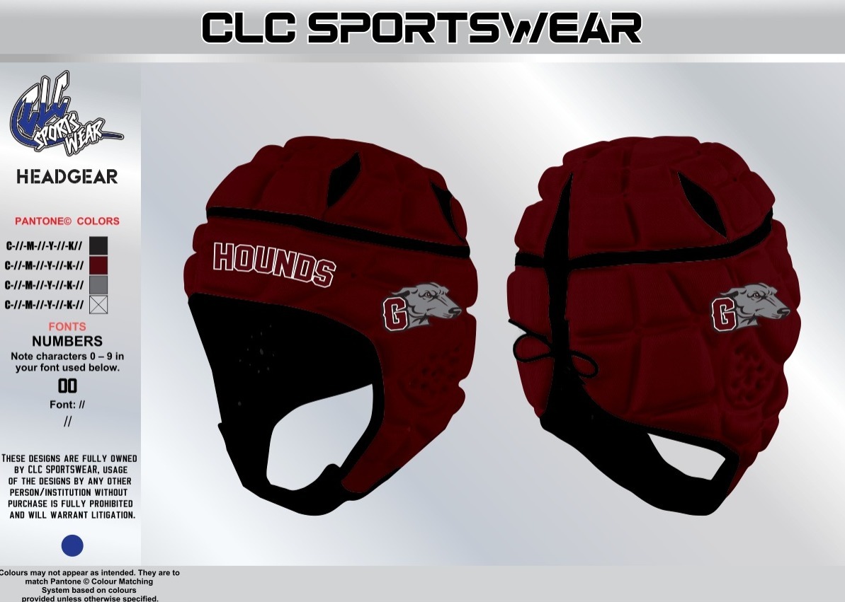 Stay protected and represent the Hounds with the Hounds 7v7 Headgear (Maroon). This padded headgear features a bold HOUNDS wordmark across the front and the G Hounds greyhound mascot on the side for a strong team identity. Designed specifically for 7v7 and flag football formats, the padded construction provides essential head protection during contact-adjacent play while keeping the athlete comfortable and focused.