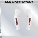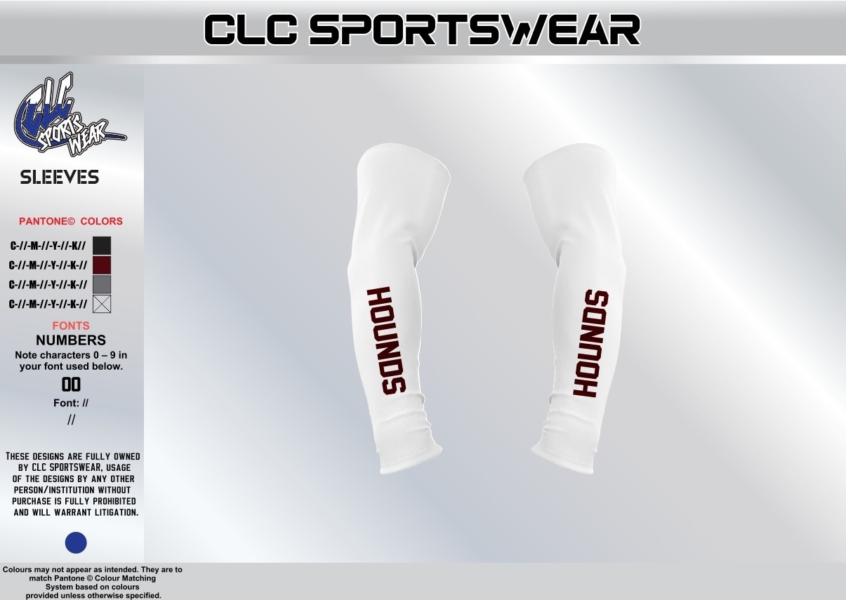 White Hounds arm sleeves with bold vertical HOUNDS wordmark—clean, compression-fit sleeves that pair perfectly with the white Hounds uniform.
