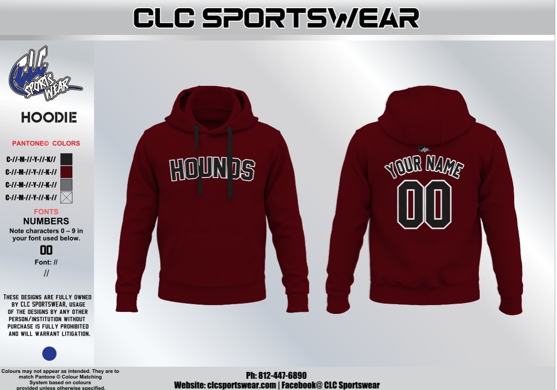 Tags CLC Sportswear, fan gear, hoodie, Hounds Football, maroon hoodie, team apparel, travel hoodie, warmup hoodie