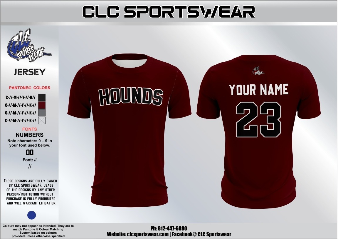 Classic Hounds Football tee-style shirt in maroon with bold HOUNDS front and optional name/number styling on backperfect for fans and teams.