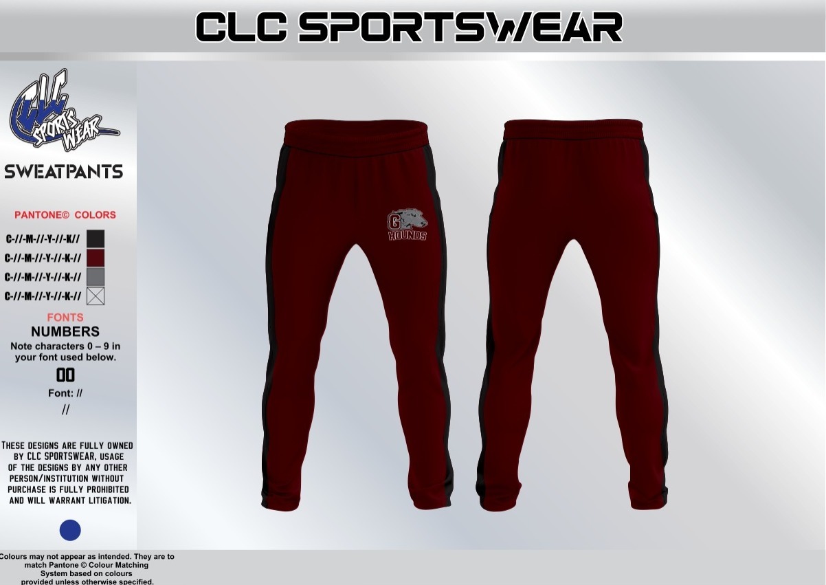 Comfort-first Hounds Football sweatpants in maroon with team crestbuilt for travel days, warmups, and everyday Hounds pride.