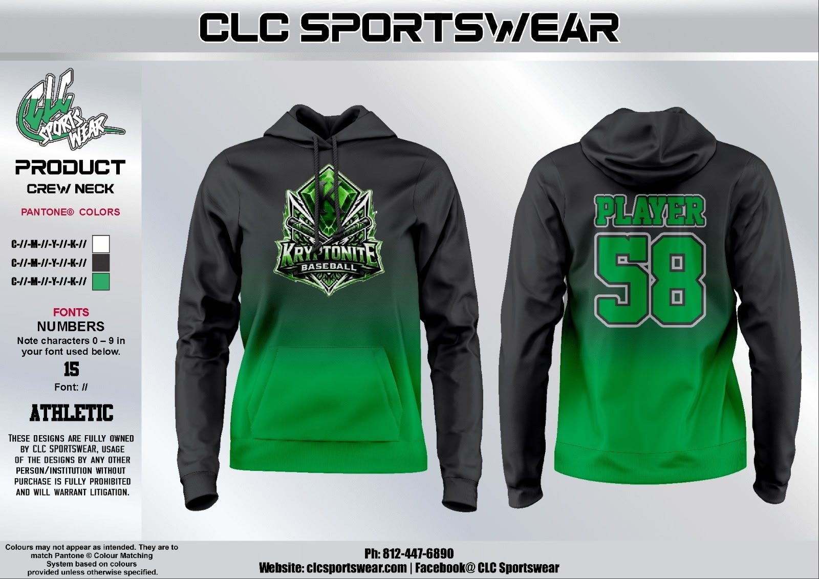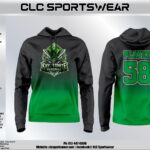 Black-to-green gradient hoodie with large Kryptonites crest on the front and player number on the back.