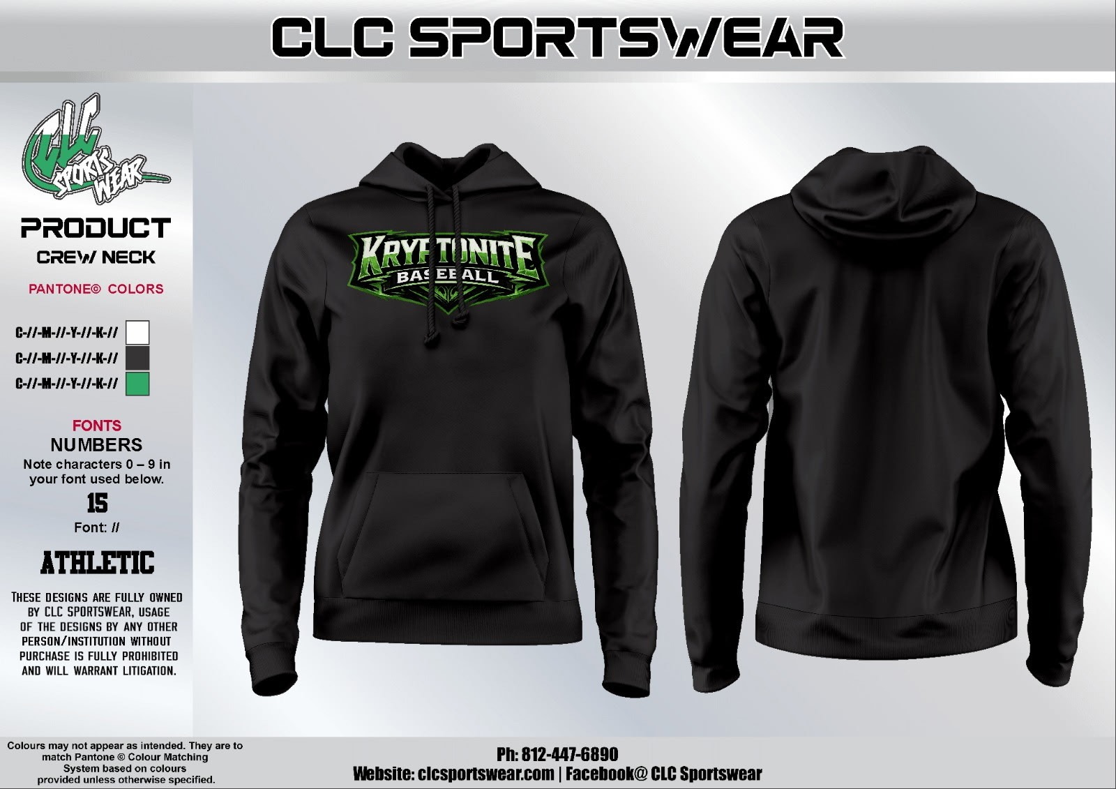 Built for cool weather, this hoodie is ideal for early-season games, travel days, and everyday wear for players and fans. The design pairs perfectly with Kryptonites pants, tees, and hats, making it a natural centerpiece for spirit wear bundles and team shops. Its simple back keeps the focus on the powerful front graphic while ensuring easy customization if names or numbers are added later.