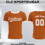 Longhorns inspired design created specifically for South Tyler County Little League players, parents, and fans. This fully sublimated jersey features official team colors, bold front chest script, and a clean professional look that matches the on-field uniforms. Premium lightweight performance fabric keeps athletes cool and comfortable in the Texas heat, while the athletic cut allows for full range of motion during throwing, hitting, and fielding.