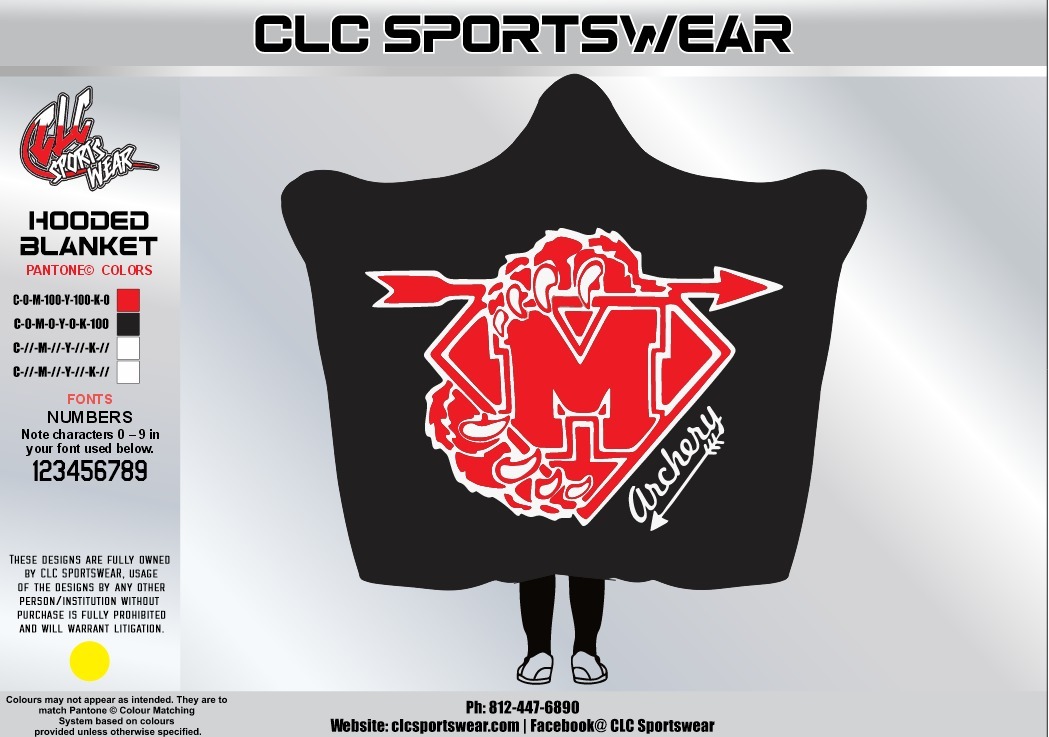 Experience ultimate comfort and team pride with this premium Madison Cubs black hooded blanket from CLC Sportswear. The sophisticated black fabric provides a striking canvas for the oversized Madison Cubs logo with arrow design and Madison script text, rendered in bold red and white that creates a powerful visual impact. This dramatic color combination ensures your team allegiance is visible from across any venue. The innovative hooded cape design offers superior functionality, providing comprehensive upper body warmth while keeping your arms free for holding drinks, snacks, or using your phone during games and events. Constructed from exceptionally soft, high-pile fleece material, this hooded blanket delivers luxurious warmth and comfort that rivals any premium throw blanket. The integrated hood adds an extra layer of coziness, protecting your head and neck from cold weather while creating a comfortable retreat during outdoor tournaments or chilly evening events. The generous size accommodates users of all heights and builds, ensuring everyone can enjoy the full comfort and warmth this blanket provides. Despite its substantial warmth, the lightweight design makes it easy to carry, fold, and pack for travel to away competitions or team outings. This multi-functional piece works equally well as a wearable blanket during outdoor events, a cozy throw for indoor relaxation, or a decorative display piece that showcases your Madison Archery dedication. The professional-grade construction and colorfast printing technology ensure this hooded blanket will maintain its appearance and softness through regular use and washing, making it a lasting investment in your team gear collection.