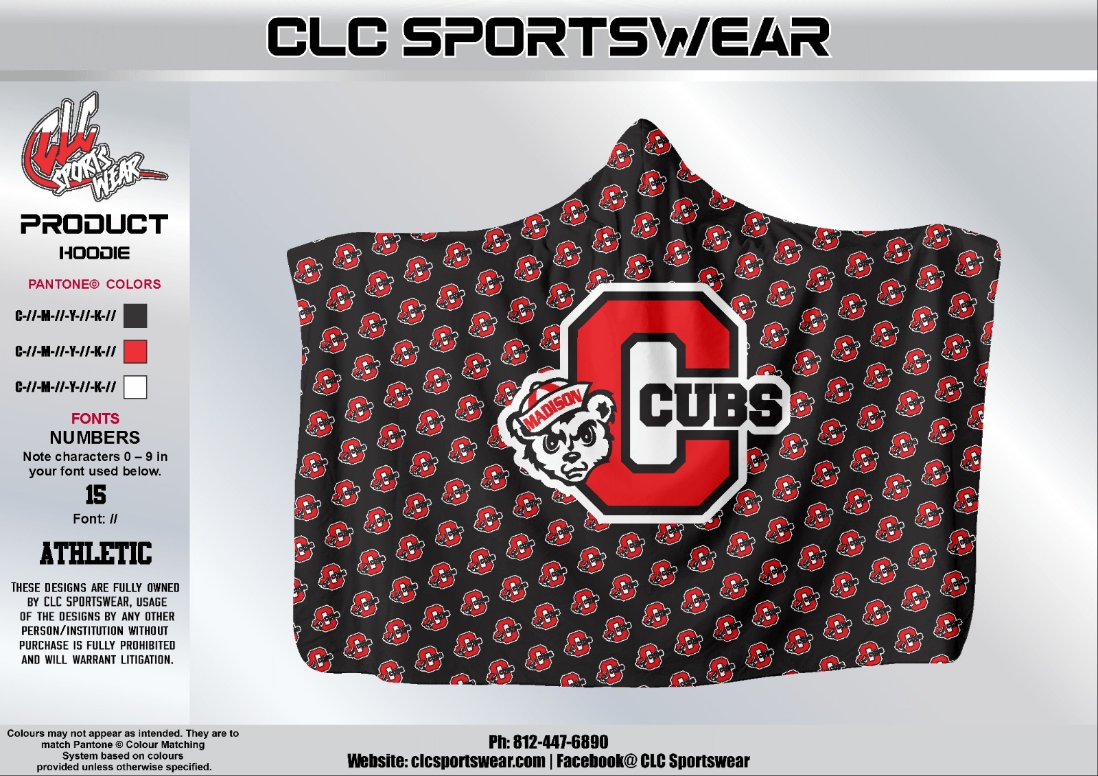 Madison Cubs Hooded Blanket – All-Over Pattern Design