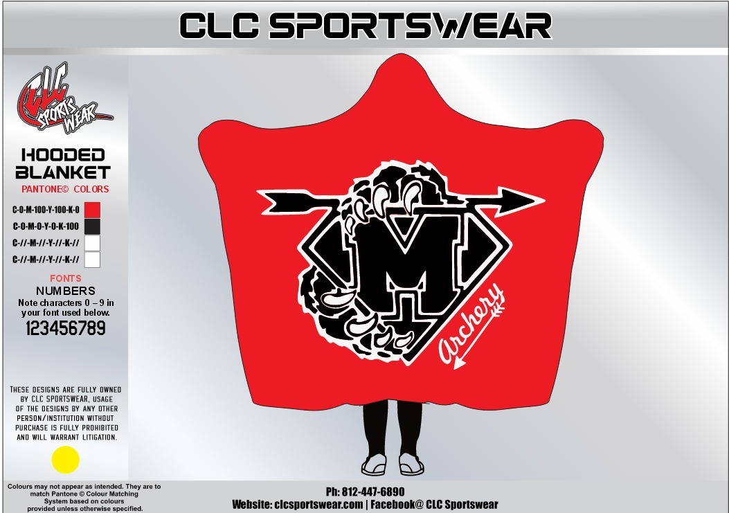 Wrap yourself in team spirit with this stunning Madison Cubs red hooded blanket from CLC Sportswear. The vibrant red fabric creates an eye-catching backdrop for the oversized Madison Cubs logo with arrow design and Madison script text, all rendered in bold black and white that dominates the center of the blanket. This dramatic design makes an unmistakable statement of your dedication to the Madison Archery program. The unique hooded cape design provides full upper body coverage while leaving your arms free, making it perfect for outdoor events, chilly tournament days, or cozy evenings at home. Crafted from ultra-plush, premium-quality fleece material, this hooded blanket delivers exceptional warmth and softness that you will want to wrap up in again and again. The integrated hood provides additional warmth for your head and neck, creating a cozy cocoon of comfort during cold weather competitions or outdoor team gatherings. The generous dimensions ensure complete coverage for users of all sizes, while the lightweight construction makes it easy to fold, pack, and transport to away competitions or team travel events. This versatile piece serves multiple purposes – use it as a blanket during outdoor tournaments, wear it as a cape during team celebrations, or display it as a decorative throw that showcases your Madison Archery pride in your home or dorm room. The high-quality construction and fade-resistant printing ensure this hooded blanket will remain a cherished piece of team gear for years to come.