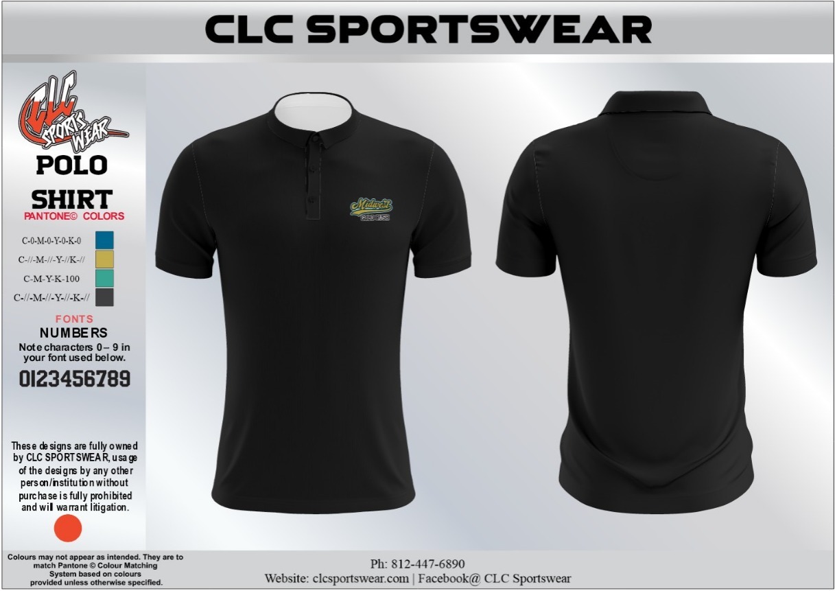 Premium Black polo shirt with embroidered Midwest Gold Rush logo, pique knit fabric, and classic button placket. Perfect for refined team style.