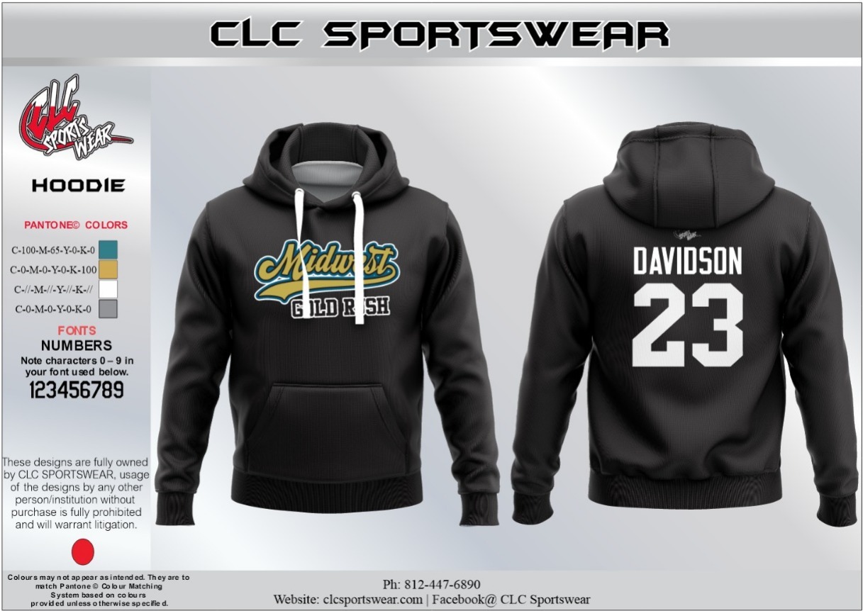 Built to last through countless washes and wears, this high-quality hoodie features reinforced stitching at stress points and premium fabric that resists pilling and fading. The ribbed cuffs and waistband ensure a snug fit that keeps warmth in and cold out. The back prominently displays ‘DAVIDSON’ above the number ’23’ in bold athletic lettering, making it perfect for players and fans alike. Whether you’re traveling to away games, lounging at home, or layering up for outdoor activities, this versatile hoodie delivers the perfect combination of team pride, comfort, and durability that Midwest Gold Rush supporters demand.