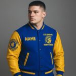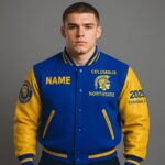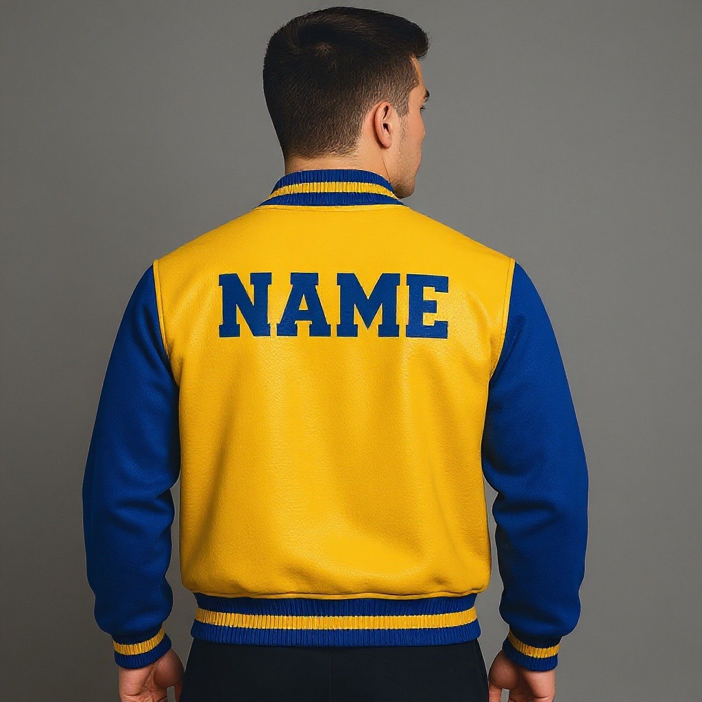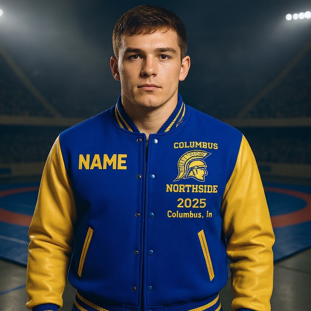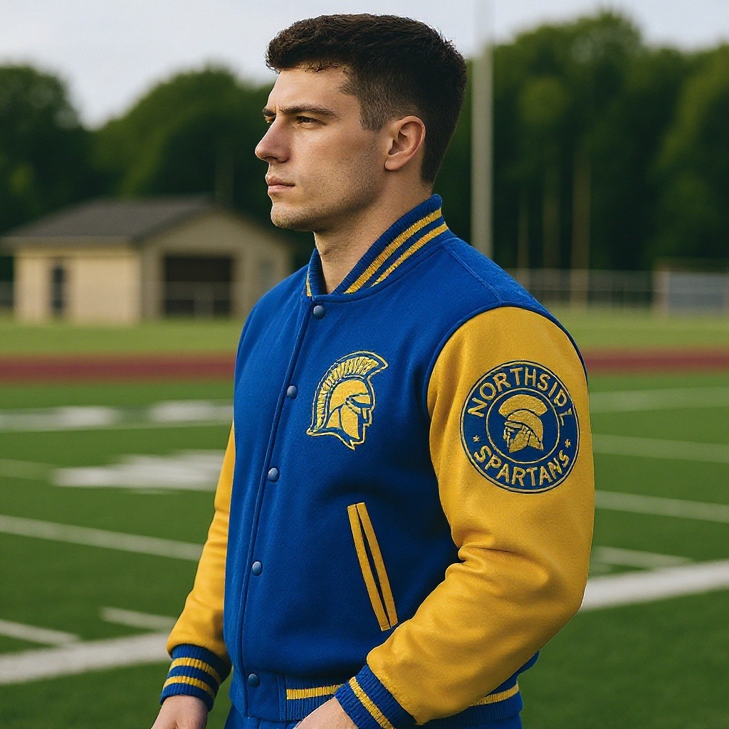 Command attention and embody school pride with the Northside Spartans Varsity Jacket. This premium two-tone jacket pairs deep blue with vibrant yellow for a timeless varsity aesthetic. Embroidered details include the official Spartans logo, sleeve patch, and a customizable name field, making this a standout piece for athletes and fans alike.