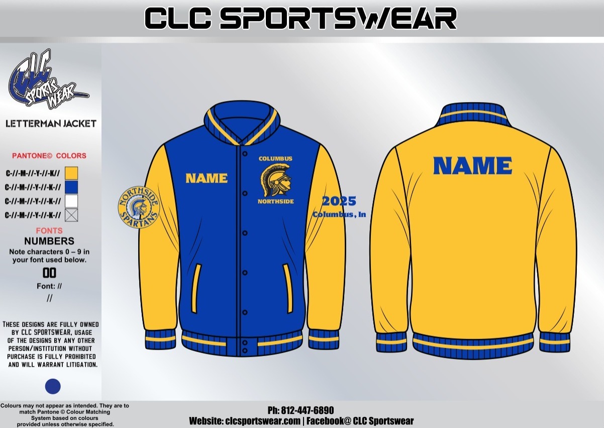 Classic Northside Spartans varsity jacket with custom name embroidery.
