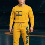 Tags athletic wear, gold pants, northside spartans, team sweatpants, wrestling sweatpants