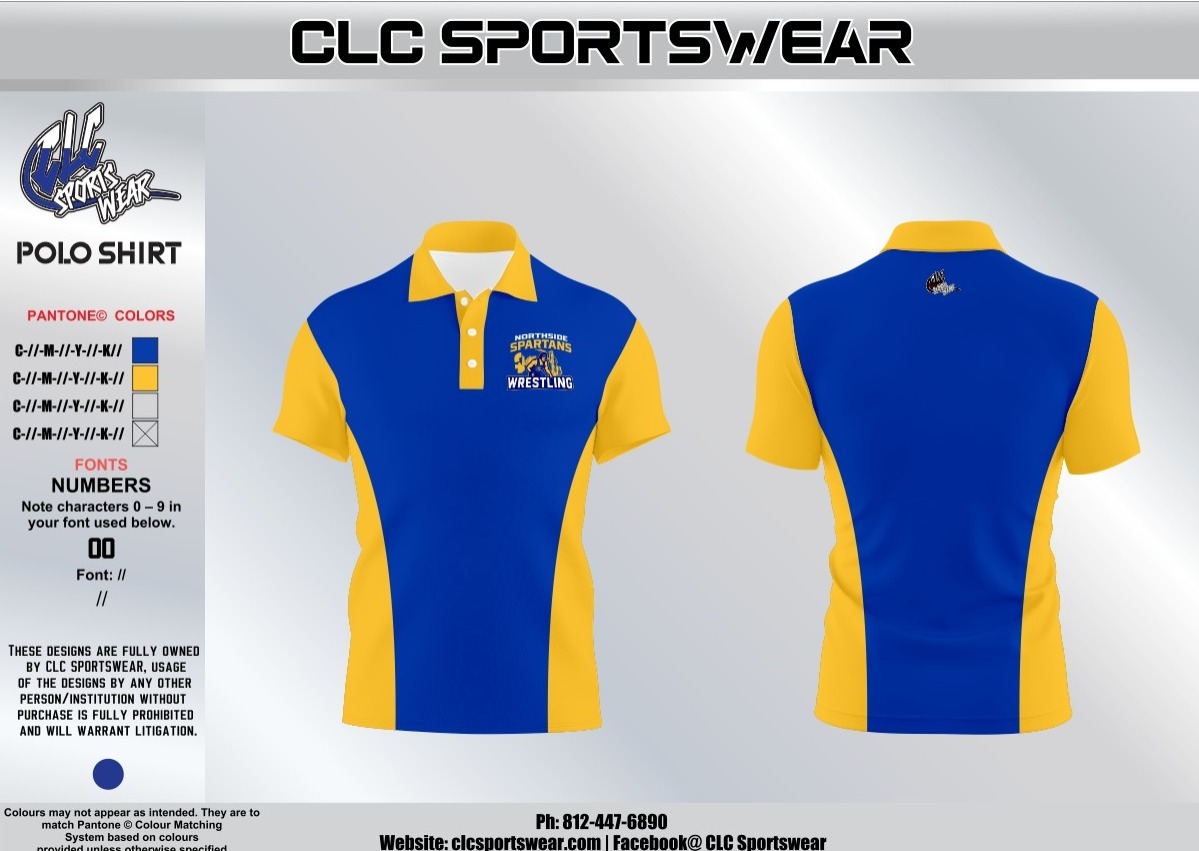 Northside Spartans Wrestling Polo Shirt – Blue/Gold Design