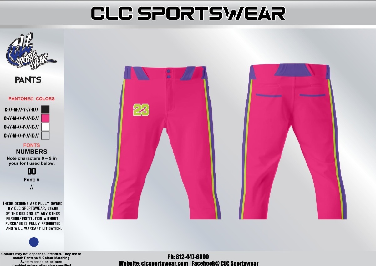 Complete your Team Chaos uniform with these high-performance athletic pants featuring hot pink base color with purple and lime green side stripes and customizable number placement.