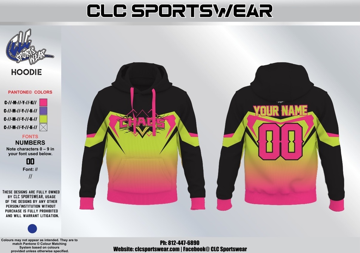 Crafted from high-quality fleece material, this hoodie provides exceptional warmth and comfort for cool weather games, practice sessions, or casual wear. The hood features hot pink drawstrings that coordinate perfectly with the gradient design, while the ribbed cuffs and hem in hot pink add stylish finishing touches. The back of the hoodie continues the gradient effect and includes customizable player name and number in lime green lettering. Whether you’re warming up before a game, cheering from the sidelines, or representing your team around town, this hoodie delivers premium comfort and unmistakable Team Chaos style. It’s the perfect layering piece that transitions effortlessly from athletic to casual wear.